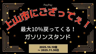 PayPay 【PayPayペイペイ】上山市10%還元キャンペーンガソリンスタンド対象店舗!山形県最新情報 今回は、山形県上山市のPayPay10%還元対象の、 ガソリンスタンドをご紹介します。 期間は、2025年10月10日(金)0:00〜2025年11月30日(日)23:59まで。 楽天トラベル 【じゃらん】国内24000... 2024.06.10 PayPay