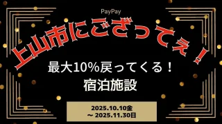 PayPay 【PayPayペイペイ】上山市10%還元キャンペーン宿泊施設等対象店舗!山形県最新情報 今回は、山形県上山市のPayPay10%還元対象の、 宿泊施設/ホテル/旅館/レジャー/浴場をご紹介します。 期間は、2025年10月10日(金)0:00〜2025年11月30日(日)23:59まで。 楽天トラベル 【じ... 2024.06.09 PayPay