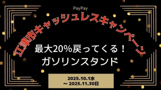 PayPay 【PayPayペイペイ】江津市20%還元キャンペーンガソリンスタンド対象店舗!島根県最新情報 今回は、島根県江津市20%還元対象の、 ガソリンスタンドをご紹介します。 期間は、2025年10月1日 午前0時 ~ 2025年11月30日 午後11時59分まで。 楽天トラベル 【じゃらん】国内24000軒の宿をネット... 2025.10.05 PayPay