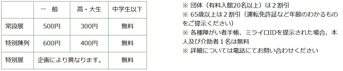 休館日:月曜日(1月12日は開場)、12月28日〜1月4日、1月13日
